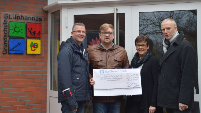Die Firma Meyer EHS hat einen Spendenscheck über 700,00 Euro an den Förderverein der St. Johannes Grundschule in
